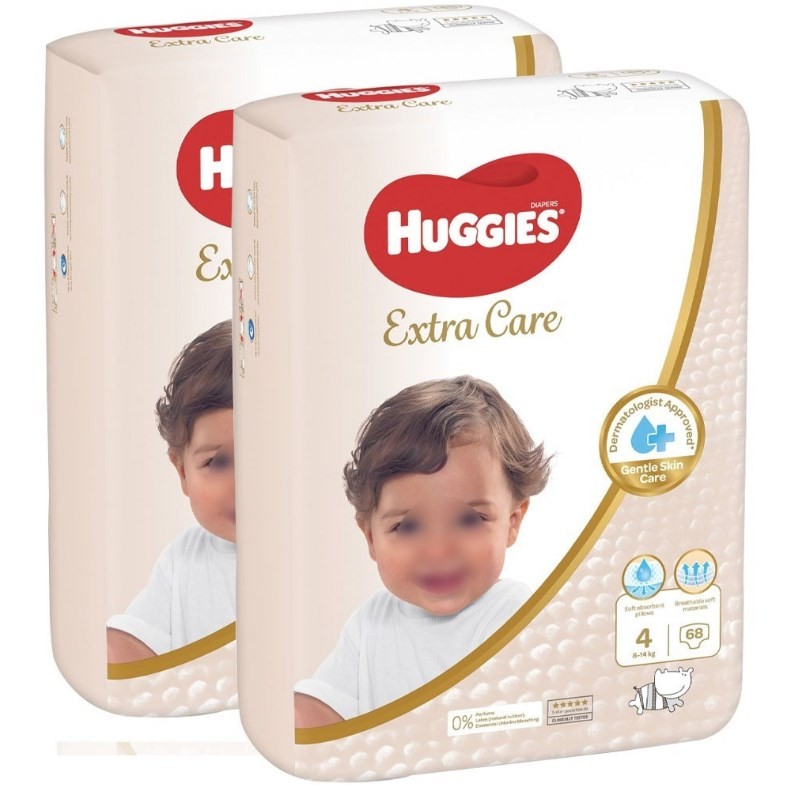 هجيز | حفاضات اطفال | مقاس 4 | 68 قطعة | عناية فائقة | عرض 2 شدة HUGGIES | Baby Diapers | 4/68 | Extra Care | 8-14Kg | 2 Packs