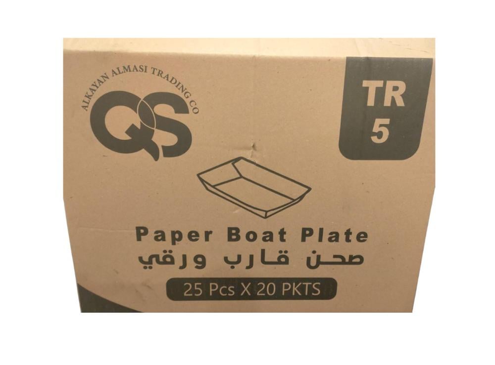 • كيو اس | صحون ورقية كرافت | شكل قارب | بني | رقم 5 | كرتون | 500 حبة QS | Kraft Paper Plates | Boat Shape | Brown | No.5 | Carton | 500 pcs