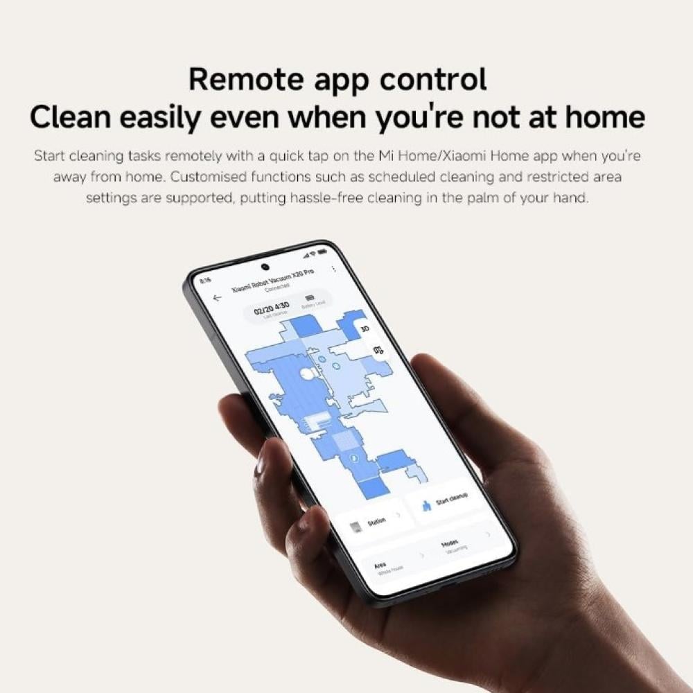 • جدولة مرنة: تحكم كامل بالمكنسة عن بعد عبر تطبيق الجوال، وجدولة أوقات التنظيف لتناسب نمط حياتك.