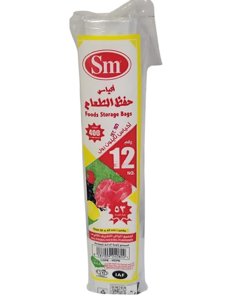 اسم المنتج: اس ام اكياس نايلون رول مقاس 12 حجم 45x30 سم 400 جرام بندل 12 حبة