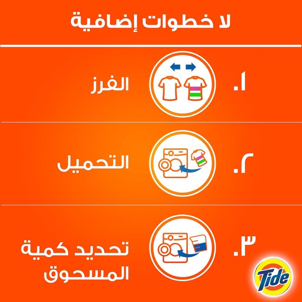 يوفر لك جل تايد باور بياضًا ناصعًا بسهولة، بفضل تركيبته العميقة المقشرة، التي تمنح ملابسك إشراقة لفترة أطول.