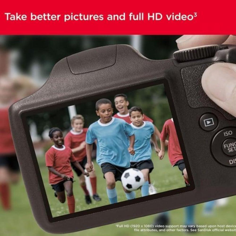 - أداء تسجيل فيديو استثنائي مع تصنيف سرعة يو اتش اس من الفئة 1 (U1) الفئة 10 لفيديو فل اتش دي (1080 بكسل) (يو اتش اس سبيد كلاس 1 (U1) يحدد خيار أداء مصمم لدعم تسجيل الفيديو في الوقت الحقيقي مع الأجهزة المضيفة التي تدعم يو اتش اس. اطلع على صفحة سرعة المستهلكين على موقع سانديسك الإلكتروني. قد يختلف دعم الفيديو عالي الدقة بالكامل (1920 × 1080) بناءً على الجهاز المضيف وسمات الملف وعوامل أخرى. قم بزيارة قاعدة معارف فيديو سانديسك لمزيد من المعلومات.)