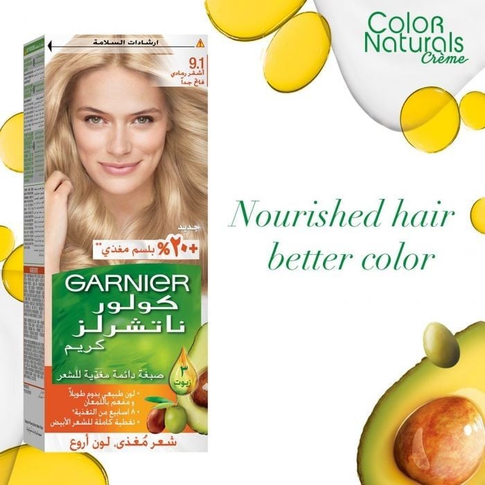 صبغة شعر جارنييه كولور ناتشرلز لون أشقر رمادي فاتح جدا رقم 9.1.
