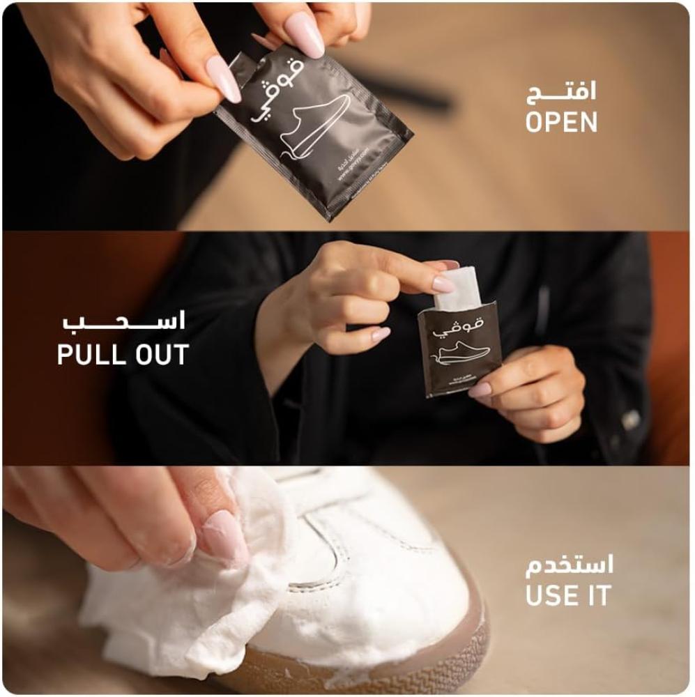 حل مثالي للحفاظ على أناقة الحذاء في كل مكان وزمان، مع مناديل تنظيف الأحذية من قوفي، سهلة الاستخدام ومغلفة بشكل فردي لضمان النظافة وجودة الأداء في أي وقت