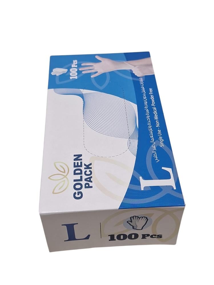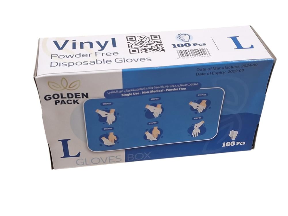 اسم المنتج: قفازات فينيل بدون بودر الذهبي100 حبة مقاس لارج الروافد