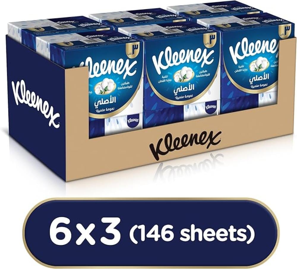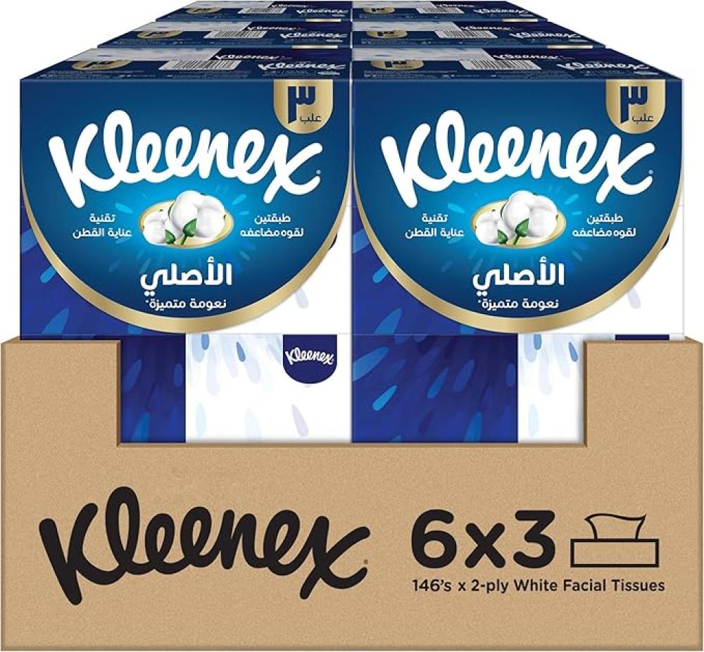 كلينكس الاصلي | كرتون مناديل وجه | 2 طبقتان | 6 شدات × 3 علب × 146 منديل