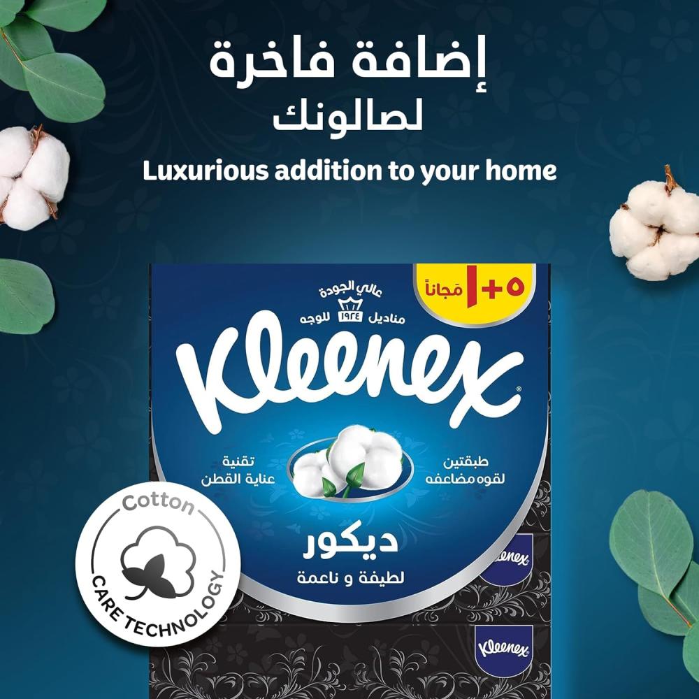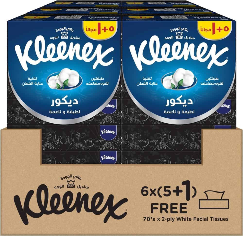 كلينكس ديكور | كرتون مناديل وجه | طبقتان | 6 شدات × (5+1) علبة × 70 منديل