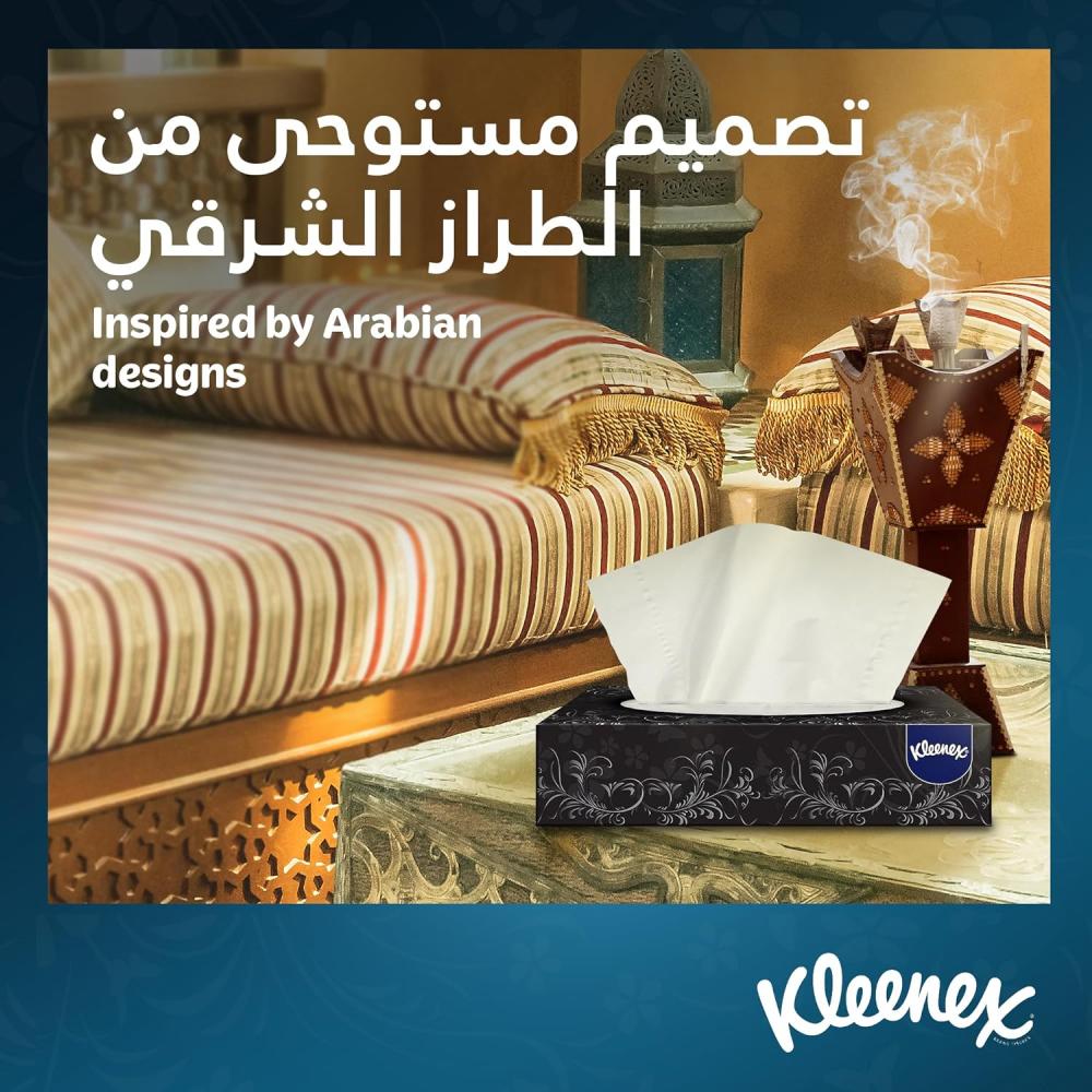 • تصميمات علبة مناديل أنيقة: ارتقِ بديكور منزلك مع تصميمات علبة مناديل الوجه من كلينكس، مصنوعة بعناية لإضافة لمسة عربية فاخرة إلى أي مساحة