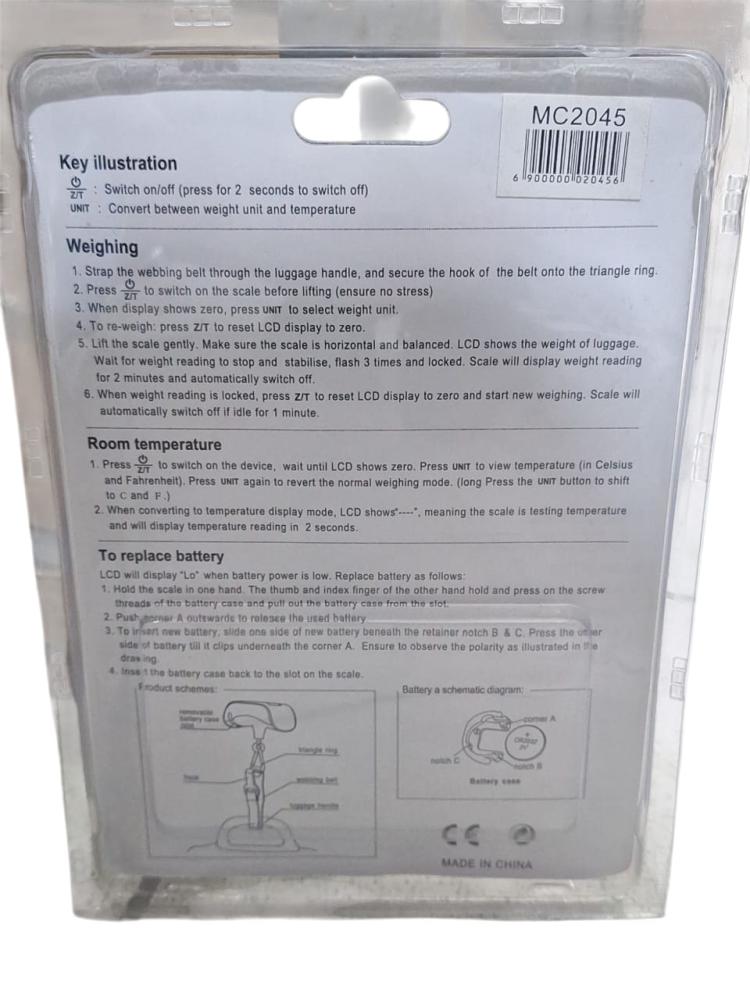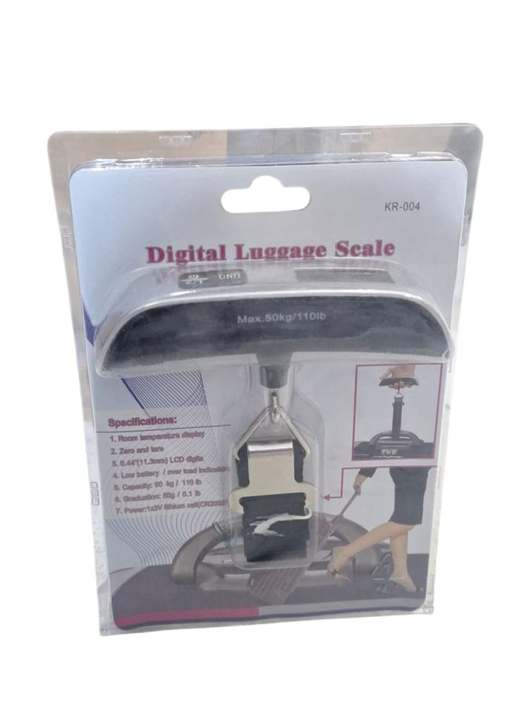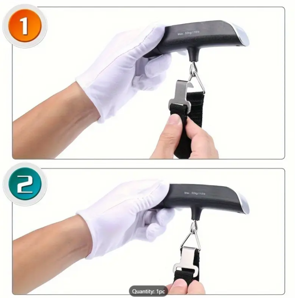 ميزان أمتعة رقمي بشاشة LCD | سعة 110 رطل/50 كجم / ميزان وزن حقائب السفر البلاستيكية | يعمل بالبطارية | لا يلامس الطعام | أداة موازنة معلقة محمولة