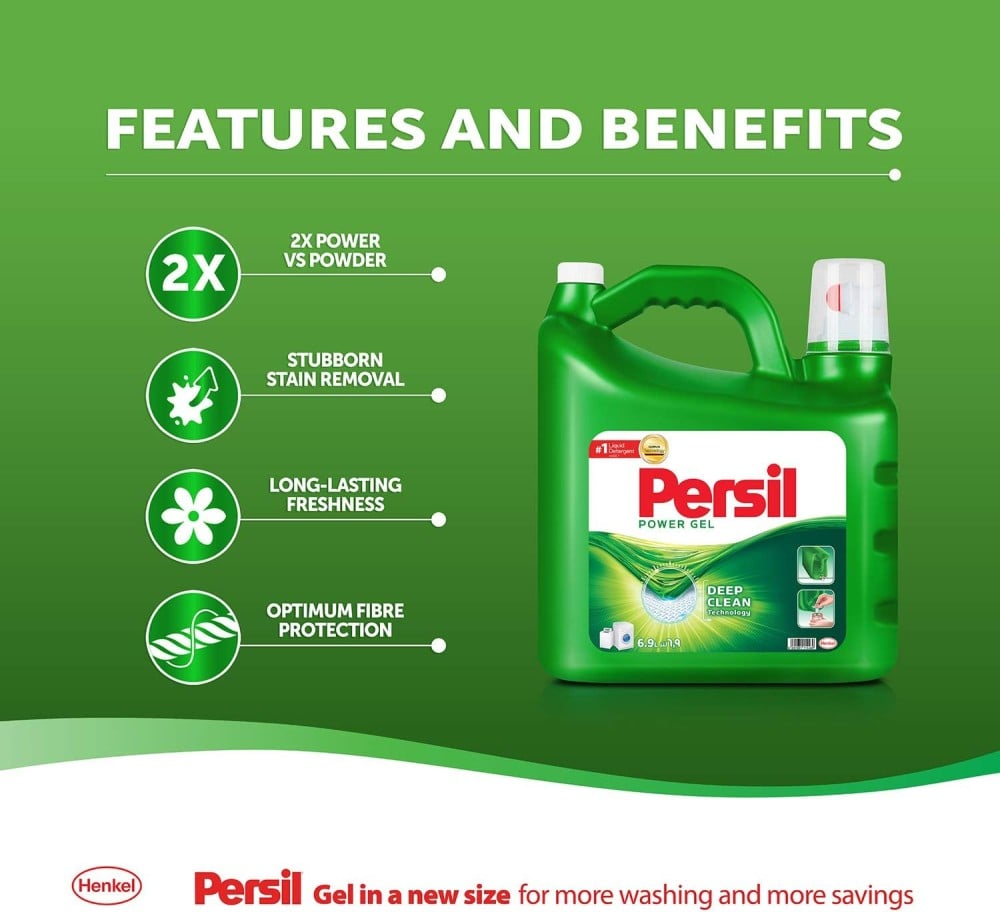 - تقنية التنظيف العميق: بفضل تقنية التنظيف العميق الألمانية، فإن برسيل جل هو المنظف السائل رقم 1 في جي سي سي، وفقًا للأبحاث الكمية.