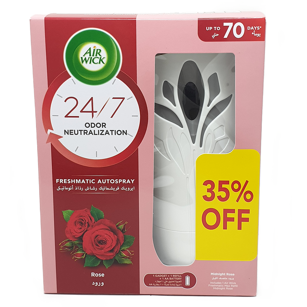 مميزات air wick معطر | جهاز مكينة مع المعطر جو | اوتوماتيك | ورد | 250 مل Air wick | Machine Device & Air Freshener | Automatic | Rose | 250 ml :