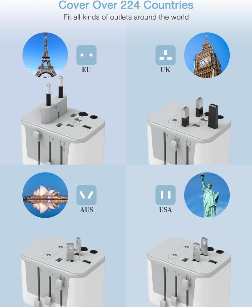 • محول طاقة عالمي: محول قابس عالمي تيسان مع 4 مقابس مختلفة يغطي أكثر من 200 دولة؛ يجب أن يكون لديك أساسيات السفر في جميع أنحاء العالم إلى معظم البلدان الأوروبية وفرنسا وألمانيا وإيطاليا وإسبانيا وأيسلندا واليونان وإسرائيل (النوع C)؛ المملكة المتحدة، أيرلندا، لندن، إنجلترا، اسكتلندا، دبي (النوع G)؛ الصين، أستراليا، نيوزيلندا (النوع I)؛ الولايات المتحدة الأمريكية، اليابان، كندا (النوع أ) ؛ ملاحظة: غير مخصص لجنوب أفريقيا والهند؛