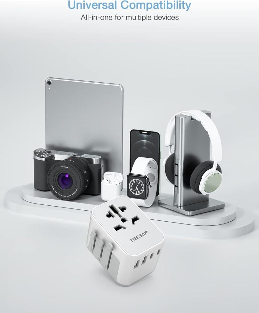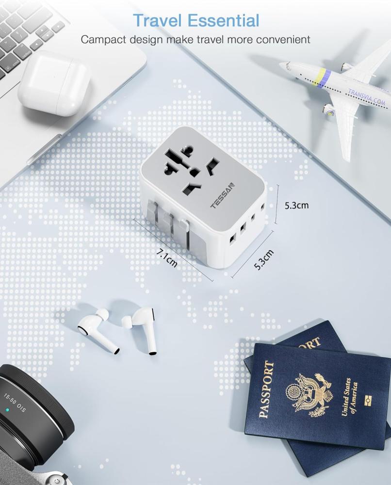 • محول سفر محمول: تصميم محول السفر الدولي تيسان بحجم صغير 7.1 × 5.3 × 5 سم وخفيف الوزن 149 جرام مما يسهل حمله وتوفير مساحة أمتعتك، مثالي للسفر إلى الخارج؛