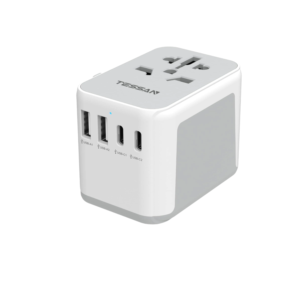 محول سفر دولي | قابس محول السفر العالمي | تيسان مع 2 USB A و2 USB C | مقبس محول طاقة عالمي International Travel Adapter | TESSAN Universal Travel Adapter | Plug with 2 USB A and 2 USB C Chargers