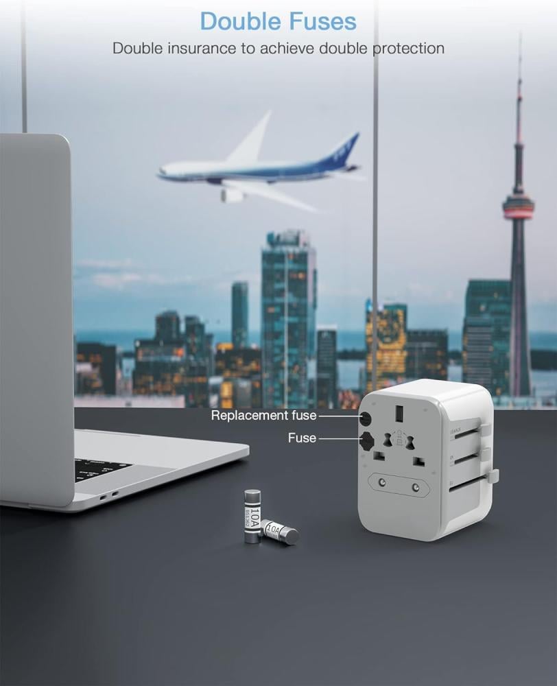 • حماية الصمامات المزدوجة: يمكن لمحول الطاقة العالمي هذا المدمج مع صمام 10 أمبير حماية أجهزتك الموصولة من الحمل الزائد والتيار الزائد؛ سيتيح لك ضوء المؤشر الخافت معرفة الطاقة أو إيقاف التشغيل دون إزعاج راحتك؛