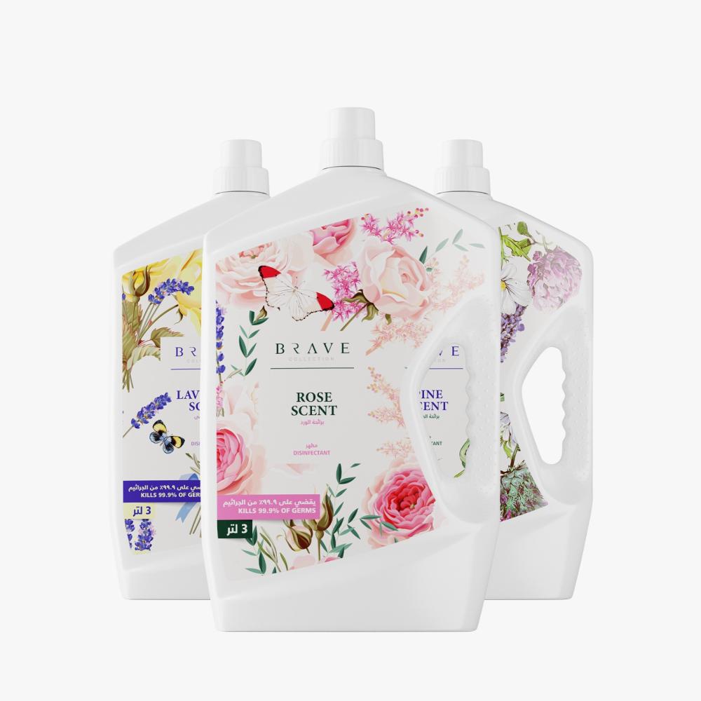 استمتع بنظافة مميزة ورائحة منعشة تدوم طويلًا مع مطهر الأرضيات حيث يحتوي الكرتون على ثلاث عبوات، كل منها بحجم 3 لتر، وتأتي بثلاث خلاصات مميزة من اللاڤندر، الورد، والصنوبر. هذا المطهر مثالي لمنح منزلك أو مكتبك رائحة زكية وبيئة نظيفة.