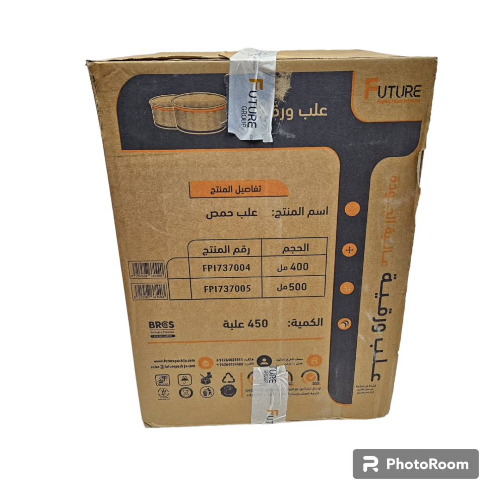 - علب من ورق ابيض بغطاء مناسبة للمايكرويف 14 اونص / 400 مل