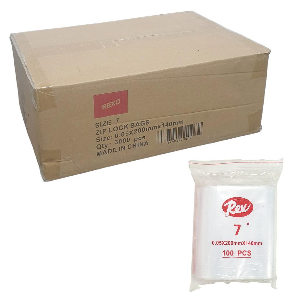 Rex | Plastic Zipper Bags | ZipLock | Clear | No.7 | 20x14 cm | 100 pcs | Carton | 30 Packs